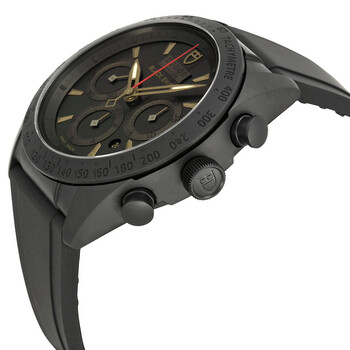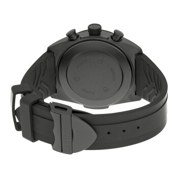 Black ceramic case with a black silicone rubber strap. Fixed black ceramic with tachymeter markings bezel. Black dial with luminous rose gold hands and index hour markers. Minute markers around the outer rim. Dial Type: Analog. Luminescent hands. Date display between 4 and 5 o'clock position. Chronograph - three sub-dials displaying: 60 second, 30 minute and 12 hour. ETA-Valjoux Caliber 7753 automatic movement with a 46-hour power reserve. Scratch resistant sapphire crystal. Screw down crown. Solid case back. Case size: 42 mm. Case thickness: 15 mm. Round case shape. Band width: 24 mm. Fold over ceramic clasp. Water resistant at 150 meters / 500 feet. Functions: chronograph, date, hour, minute, second. Luxury watch style. Watch label: Swiss Made. Item Variations: 42000CN-rubber, 42000cn-0005. Tudor Blackshield Automatic Chronograph Black Dial Black Rubber Men's Watch 42000CN-BKRS.