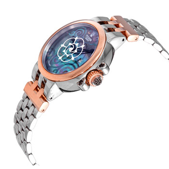 Stainless steel case with a two-tone (silver-tone and rose gold-tone) stainless steel bracelet. Fixed rose gold-tone bezel. Mother of pearl dial with black skeleton hands. No markers. Dial Type: Analog. Date display at the 3 o'clock position. Tudor calibre 2671 automatic movement with a 38-hour power reserve. Scratch resistant sapphire crystal. Screw down crown. Solid case back. Round case shape. Case size: 30 mm. Tang clasp. Water resistant at 100 meters / 330 feet. Functions: date, day, hour, minute, second. Casual watch style. Watch label: Swiss Made. Tudor Clair de Rose Automatic Ladies Watch M35401-0003.