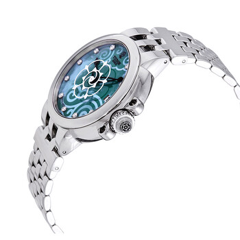 Stainless steel case with a stainless steel bracelet. Fixed stainless steel bezel. Green mother of pearl dial with black skeleton hands and diamond hour markers. Dial Type: Analog. Date display at the 3 o'clock position. Tudor calibre 2824 automatic movement with a 38-hour power reserve. Scratch resistant sapphire crystal. Screw down crown. Solid case back. Round case shape. Case size: 34 mm. Fold over clasp. Water resistant at 100 meters / 330 feet. Functions: date, hour, minute, second. Dress watch style. Watch label: Swiss Made. Item Variations: 35700-0009. Tudor Claire de Rose Automatic Diamond Ladies Watch M35700-0009.