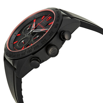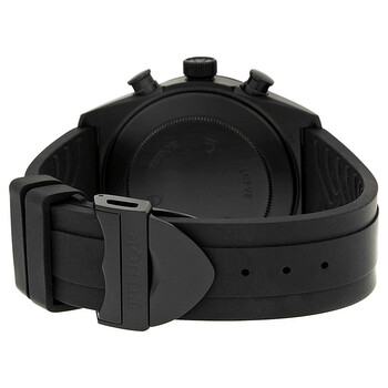 Black PVD ceramic case with a black rubber strap. Fixed tachymeter scale black ceramic bezel. Black dial with silver-tone hands and index hour markers. Minute markers around the outer rim. Dial Type: Analog. Luminescent hands and markers. Date display between 4 and 5 o'clock position. Chronograph - three sub-dials displaying: 60 second, 30 minute and 12 hour. ETA-Valjoux Caliber 7753 Automatic movement, based upon ETA 7750, containing 27 Jewels, bitting at 28800 vph, and has a power reserve of approximately 44 hours. Scratch resistant sapphire crystal. Screw down crown. Solid case back. Round case shape, case size: 42 mm, case thickness: 15 mm. Flip lock clasp. Water resistant at 150 meters / 500 feet. Functions: chronograph, date, hour, minute, second. Fastrider Series. Luxury watch style. Watch label: Swiss Made. Tudor Fastrider Black Shield Black Dial Black Rubber Men's Watch 42000CR-BKSBKRS.