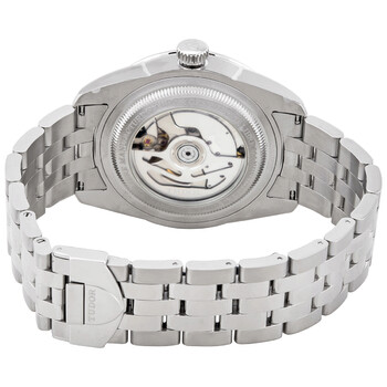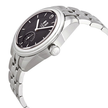 Stainless steel case with a stainless steel bracelet. Fixed stainless steel bezel. Black dial with luminous silver-tone hands and index hour markers. Minute markers around the outer rim. Dial Type: Analog. Luminescent hands. Double date display below the 12 o'clock position. Small seconds sub-dial. Tudor calibre MT5641 automatic movement, containing 32 Jewels, bitting at 28800 vph, and has a power reserve of approximately 70 hours. Scratch resistant sapphire crystal. Screw down crown. Transparent case back. Round case shape. Case size: 42 mm. Band width: 22 mm. Fold over clasp with a safety release. Water resistant at 100 meters / 330 feet. Functions: big date, hour, minute, small second, chronometer. Glamour Double Date Series. Luxury watch style. Watch label: Swiss Made. Tudor Glamour Double Date Automatic Black Dial Men's 42 mm Watch M57100-0003.