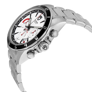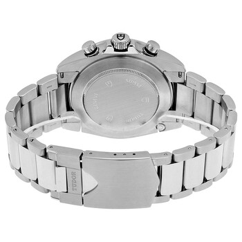 Stainless steel case with a stainless steel bracelet. Fixed stainless steel bezel with a black top ring. White dial with luminous silver-tone hands and index hour markers. Minute markers around the outer rim. Dial Type: Analog. Luminescent hands and markers. Date display between 4 and 5 o'clock positions. Chronograph - three sub-dials displaying: 60 second, 30 minute and 12 hour. Automatic movement. Scratch resistant sapphire crystal. Case diameter: 42 mm. Round case shape. Deployment clasp. Water resistant at 150 meters / 500 feet. Functions: chronograph, date, hour, minute, second. Luxury watch style. Watch label: Swiss Made. Item Variations: M20530N-0001. Tudor Grantour Chronograph Automatic White Dial Stainless Steel Men's Watch 20530N-WSSS.