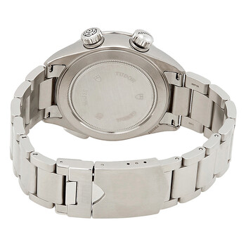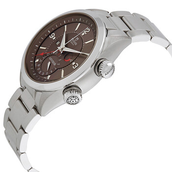 Grey titanium case with a silver-tone stainless steel bracelet. Fixed grey titanium bezel. Cognac dial with silver-tone hands and index-Arabic numerals hour markers. Minute markers around the outer rim. Dial Type: Analog. Luminescent hands and markers. Date display at the 6 o'clock position. Two sub-dials displaying: date and alarm power reserve indicator. Tudor Calibre 2892-901 Automatic movement, based upon ETA 2892, containing 21 Jewels, bitting at 28800 vph, and has a power reserve of approximately 42 hours. Scratch resistant sapphire crystal. Solid case back. Round case shape, case size: 42 mm. Fold over clasp. Water resistant at 100 meters / 330 feet. Functions: alarm, date, hour, minute, second, power reserve indicator. Additional Info: comes with an additional fabric strap. Heritage Advisor Series. Luxury watch style. Watch label: Swiss Made. Tudor Heritage Advisor Automatic Men's Watch 79620TC-BRSS.