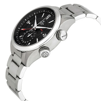 Silver-tone titanium and stainless steel case with a silver-tone stainless steel bracelet. Stainless steel bezel. Black dial with silver-tone hands and index-Arabic numerals hour markers. Dial Type: Analog. Luminescent hands and markers. Date display at the 6 o'clock position. Two- date, and power reserve subdials. Tudor Calibre 2892 automatic movement with a 42-hour power reserve. Scratch resistant sapphire crystal. Solid case back. Case size: 42 mm. Round case shape. Water resistant at 100 meters / 330 feet. Functions: date, hour, minute, second,on/off indicator for the alarm function, alarm power reserve. Dress watch style. Watch label: Swiss Made. Tudor Heritage Advisor Black Dial Automatic Men's Watch 79620TN-0001.
