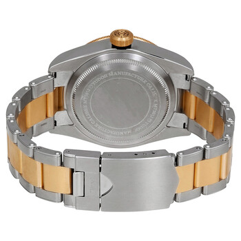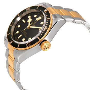 Stainless steel case with a stainless steel bracelet with yellow gold center links. Uni-directional rotating yellow gold bezel with a black anodised aluminium ring. Black dial with luminous yellow gold hands and dot hour markers. Minute markers around the outer rim. Dial Type: Analog. Luminescent hands and markers. Date display at the 3 o'clock position. Tudor calibre MT5612 automatic movement with a 70-hour power reserve. Scratch resistant sapphire crystal. Screw down crown. Solid case back. Round case shape. Case size: 41 mm. Band width: 20 mm. Fold over deployment clasp. Water resistant at 200 meters / 660 feet. Functions: date, hour, minute, second. Dress watch style. Watch label: Swiss Made. Tudor Heritage Automatic 41 mm Black Dial Men's Watch M79733N-0008.