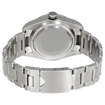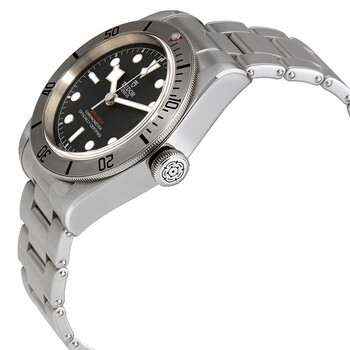 Stainless steel case with a stainless steel bracelet. Uni-directional rotating stainless steel bezel. Black dial with luminous silver-tone hands and dot hour markers. Minute markers around the outer rim. Dial Type: Analog. Luminescent hands and markers. Date display at the 3 o'clock position. Tudor calibre MT5612 automatic movement with a 70-hour power reserve. Scratch resistant sapphire crystal. Screw down crown. Solid case back. Round case shape. Case size: 41 mm. Case thickness: 15 mm. Band width: 20 mm. Band length: 8 inches. Fold over clasp with a safety release. Water resistant at 200 meters / 660 feet. Functions: date, hour, minute, second, chronometer. Dress watch style. Watch label: Swiss Made. Tudor Heritage Black Bay Automatic 41 mm Black Dial Men's Watch M79730-0006