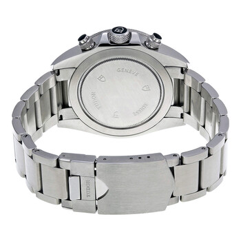 Silver-tone stainless steel case with a silver-tone stainless steel bracelet. Bi-directional rotating black stainless steel bezel. Black dial with silver-toned hands and index hour markers. Minute markers around the outer rim. Dial Type: Analog. Luminescent hands and markers. Date display at the 6 o'clock position. Chronograph - two sub-dials displaying: 60 second and 45 minute. Tudor Calibre 2892 Chronograph Automatic movement, based upon ETA 2892, containing 21 Jewels, bitting at 28800 vph, and has a power reserve of approximately 42 hours. Scratch resistant sapphire crystal. Screw down crown. Solid case back. Round case shape, case size: 42 mm. Deployment clasp. Water resistant at 150 meters / 500 feet. Functions: chronograph, date, hour, minute, second. Heritage Series. Luxury watch style. Watch label: Swiss Made. Item Variations: 70330N-95740-black-grey. Tudor Heritage Black Dial Stainless Steel Men's Watch 70330N-BKSS.