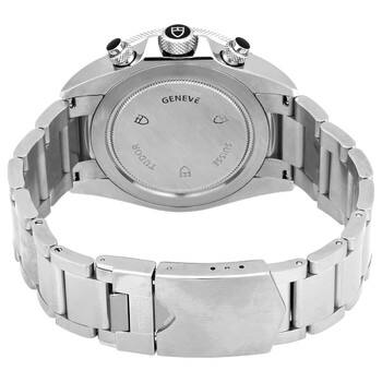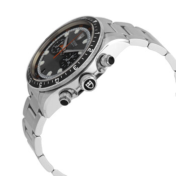Stainless steel case with a stainless steel bracelet. Bi-directional rotating stainless steel bezel with a black aluminium ring. Grey dial with luminous silver-tone hands and index hour markers. Minute markers. Arabic numeral minute markers (at 5 minute intervals) around the outer rim. Dial Type: Analog. Luminescent hands and markers. Date display at the 6 o'clock position. Chronograph - two sub-dials displaying: 45 minutes and 60 seconds. Tudor calibre 2892 automatic movement. Scratch resistant sapphire crystal. Screw down crown. Solid case back. Round case shape. Case size: 42 mm. Fold over clasp. Water resistant at 150 meters / 500 feet. Functions: chronograph, date, hour, minute, second. Heritage Series. Luxury watch style. Watch label: Swiss Made. Tudor Heritage Chronograph Automatic Grey Dial Men's Watch M70330N-0006.