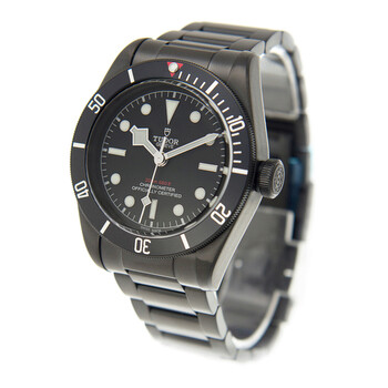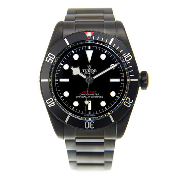 Black PVD stainless steel case with a black PVD stainless steel bracelet. Uni-directional rotating black PVD stainless steel bezel. Black dial with silver-tone hands and index hour markers. Minute markers around the outer rim. Dial Type: Analog. Luminescent hands and markers. Tudor Calibre MT5602 automatic movement with a 70-hour power reserve. Scratch resistant sapphire crystal. Solid case back. Round case shape. Case size: 41 mm. Fold over clasp. Water resistant at 200 meters / 660 feet. Functions: hour, minute, second, chronometer. Additional Info: original box, international warranty card, manual (complete accessories). Luxury watch style. Watch label: Swiss Made. Tudor Heritage Ranger Automatic Chronometer Black Dial Watch 79230DK.