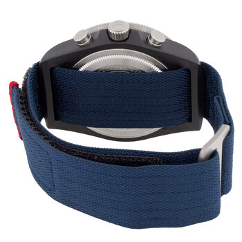 Black carbon composite case with a blue fabric strao strap. Bi-directional rotating titanium bezel. Blue dial. Dial Type: Analog. Month and date display at the 6 o'clock position. Chronograph - two sub-dials displaying: 60 second and 45 minute. Tudor Calibre MT5813 Automatic movement, based upon Breitling B01, containing 47 Jewels, bitting at 28800 vph, and has a power reserve of approximately 70 hours. Scratch resistant sapphire crystal. Screw down crown. Solid case back. Round case shape, case size: 43 mm. Water resistant at 200 meters / 660 feet. Functions: chronograph, column wheel, hour, minute, small second, power reserve indicator, chronometer. Pelagos Series. Luxury watch style. Watch label: Swiss Made. Tudor Pelagos FXD Chronograph "Alinghi Red Bull Racing Edition" Automatic Chronometer Blue Dial Men's Watch M25807KN-0001.