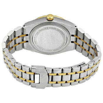 Silver-tone stainless steel case with a silver-tone stainless steel with 18kt yellow gold links bracelet. Fixed 18kt yellow gold bezel. Black dial with luminous yellow gold hands and Roman numeral hour markers. Minute markers around the outer rim. Dial Type: Analog. Luminescent hands. Date display at the 3 o'clock position. Tudor Calibre T601 Automatic movement, based upon ETA 2824, containing 25 Jewels, bitting at 28800 vph, and has a power reserve of approximately 38 hours. Scratch resistant sapphire crystal. Screw down crown. Solid case back. Round case shape, case size: 34 mm. Fold over clasp. Water resistant at 100 meters / 330 feet. Functions: date, hour, minute, second. Royal Series. Luxury watch style. Watch label: Swiss Made. Tudor Royal Automatic Black Dial 34 mm Watch M28403-0003.