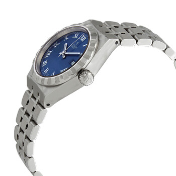 316L steel case with a 316L steel bracelet. Fluted 316L steel bezel. Blue dial with luminous silver-tone hands and Roman numeral hour markers. Minute markers around the outer rim. Dial Type: Analog. Luminescent hands. Date display at the 3 o'clock position. Tudor calibre T201 automatic movement, based upon ETA 2671, containing 25 Jewels, bitting at 28800 vph, and has a power reserve of approximately 38 hours. Scratch resistant sapphire crystal. Screw down crown. Solid case back. Round case shape. Case size: 28 mm. Fold over clasp. Water resistant at 100 meters / 330 feet. Functions: date, hour, minute, second. Royal Series. Luxury watch style. Watch label: Swiss Made. Tudor Royal Automatic Blue Dial Watch M28300-0006.