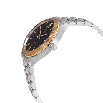 Yellow gold stainless steel case with a two-tone (silver-tone and yellow gold) stainless steel bracelet. Fixed yellow gold stainless steel bezel. Black dial with gold-tone hands and index hour markers. Minute markers around the outer rim. Dial Type: Analog. Date display at the 3 o'clock position. Tudor Calibre T601 Automatic movement, based upon ETA 2824, containing 25 Jewels, bitting at 28800 vph, and has a power reserve of approximately 38 hours. Scratch resistant sapphire crystal. Screw down crown. Solid case back. Round case shape, case size: 38 mm. Fold over clasp with a safety release. Water resistant at 100 meters / 330 feet. Functions: date, hour, minute, second. Style Series. Luxury watch style. Watch label: Swiss Made. Tudor Style Automatic Black Dial Two-tone Unisex Watch M12513-0005.