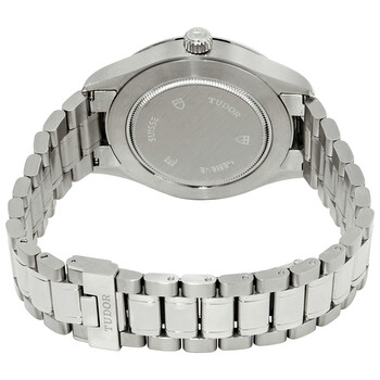 Stainless steel case with a stainless steel bracelet. Fixed fluted stainless steel bezel. Burgundy dial with silver-tone hands and index hour markers. Minute markers around the outer rim. Dial Type: Analog. Date display at the 3 o'clock position. Tudor calibre 2824 automatic movement with a 38-hour power reserve. Scratch resistant sapphire crystal. Screw down crown. Solid case back. Round case shape. Case size: 41 mm. Fold over clasp. Water resistant at 100 meters / 330 feet. Functions: date, hour, minute, second. Luxury watch style. Watch label: Swiss Made. Tudor Style Automatic Burgundy Dial Men's Watch 12710-0015.