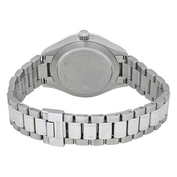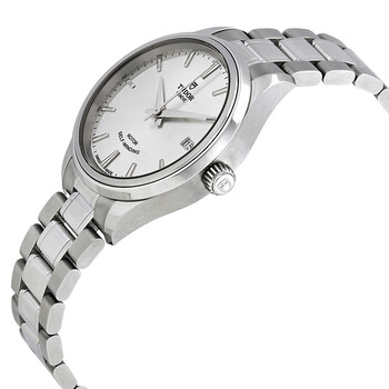 Stainless steel case with a stainless steel bracelet. Fixed domed stainless steel bezel. Silver dial with silver-tone dauphine-style hands and index hour markers. Minute markers around the outer rim. Dial Type: Analog. Date display at the 3 o'clock position. Tudor calibre 2824 automatic movement, based upon ETA 2824, containing 25 Jewels, bitting at 28800 vph, and has a power reserve of approximately 38 hours. Scratch resistant sapphire crystal. Screw down crown. Solid case back. Round case shape. Case size: 34 mm. Case thickness: 10 mm. Band length: 7 inches. Tang clasp. Water resistant at 100 meters / 330 feet. Functions: date, hour, minute, second. Style Series. Dress watch style. Watch label: Swiss Made. Tudor Style Silver Dial Automatic Men's Watch 12300-0001.
