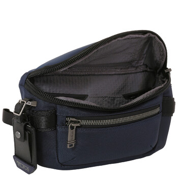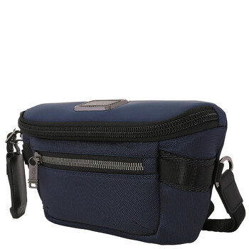 Tumi Men's Belt Bag. Alpha Bravo series. SKU: 142483 1596. Color: Navy. Size: W:26.5cm x H:14.5cm x D:6.25cm. Tumi Alpha Bravo Nylon Waist Pack. This waist pack features a zip entry to the main compartment, a front zip pocket, a back quick-access pocket with a hidden magnetic snap, a luggage tag, and an interior with two card pockets and two media pockets. 100% Nylon.