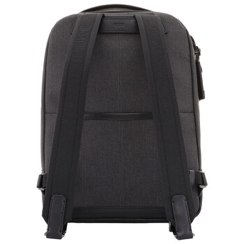 Tumi Men's Backpack. Harrison series. SKU: 142074 1374. Color: Graphite. Size: W:51.3cm x D:41.3cm x H:19..2cm. Tumi Harrison Bradner Backpack. This backpack features a padded laptop pocket, a zip pocket, three open pockets, two card pockets, two pen loops, and a key leash. It also includes a zip entry to the main compartment, a front U-zip pocket, a front straight-zip pocket with padded lining, a back quick-access pocket with a magnetic snap, a retractable leather top handle, and padded, adjustable leather-trimmed backpack straps. 100% Fabric.