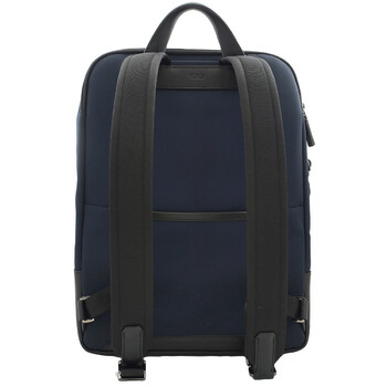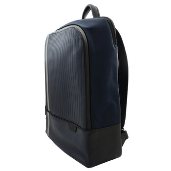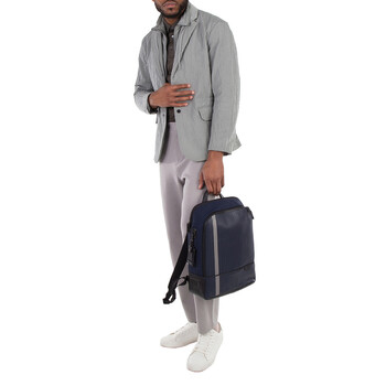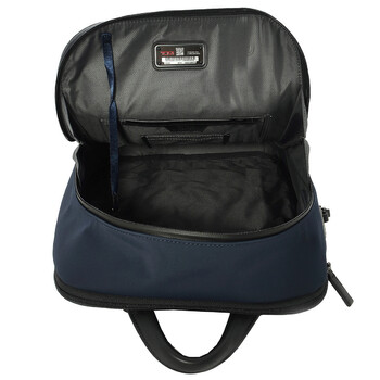Tumi Men's Backpack. SKU: 06602010MNVYS. Barcode: 883509154371. Color: Blue. Size: 11.8" W X 15.4" H X 4.8" D. Tumi Harrison William Backpack. This backpack features a zip entry to the main compartment, a separate zip entry to a padded laptop compartment that fits up to a 15” PC or 16” MacBook, and a built-in USB-C charging port supporting up to 65W fast charging. The exterior includes a back slip pocket with a magnetic snap, a leather carry handle, leather-accented adjustable backpack straps, and an Add-a-Bag sleeve. Inside, it offers an open pocket, two zip pockets, two card pockets, two pen loops, and a key leash for added organization.
