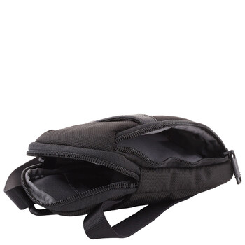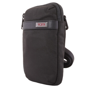 Tumi Men's Crossbody. SKU: 144590 1041. Color: Black. Size: 7.3" X 4.0" X 1.3". Tumi Small Alpha 3 Crossbody Pouch. This crossbody bag features a zip-opening main compartment, a carabiner, a stowable shoulder strap, a front vertical zip pocket, and front and back open pockets, while the interior includes an open pocket, a key leash, and a TUMI Tracer for added security. Material: Nylon.