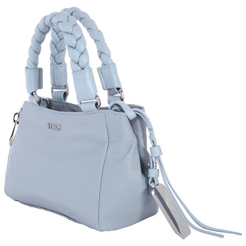 Tumi Ladies Tote. SKU: 0196608HB. Color: Blue. Size: 13.2 x 19 x 7.5 cm. Tumi Voyageur Valetta Micro Tote Bag. This tote from Tumi's Voyageur collection features a silver-tone hardware, a magnetic snap closure, leather top handles, removable adjustable crossbody strap, interior zip pocket, Tumi tracer, key leash, leather card pocket.