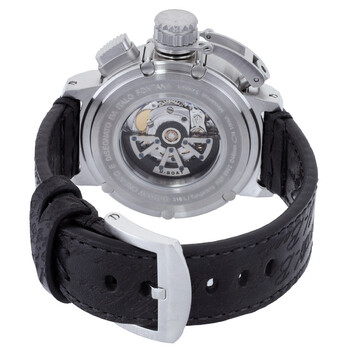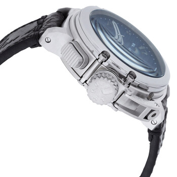 Silver-tone stainless steel case with a black aged leather strap. Tungsten silver-tone stainless steel bezel. Blue dial with silver-tone hands and index-Arabic numeral hour markers. Minute markers around the outer rim. Dial Type: Analog. One subdial displaying: 24 hour. ETA Caliber 2824 Automatic movement, containing 25 Jewels, bitting at 28800 vph, and has a power reserve of approximately 38 hours. Scratch resistant sapphire crystal. Screw down crown. Solid case back. Round case shape, case size: 46 mm. Band width: 22 mm. Buckle clasp. Water resistant at 100 meters / 330 feet. Functions: date, hour, minute, second, 24h indication. Additional Info: limited edition of 300 pieces. Chimera Series. Sport watch style. Watch label: Swiss Movt. U-Boat Limited Edition Chimera 46 Automatic Blue Dial Men's Watch 9602.