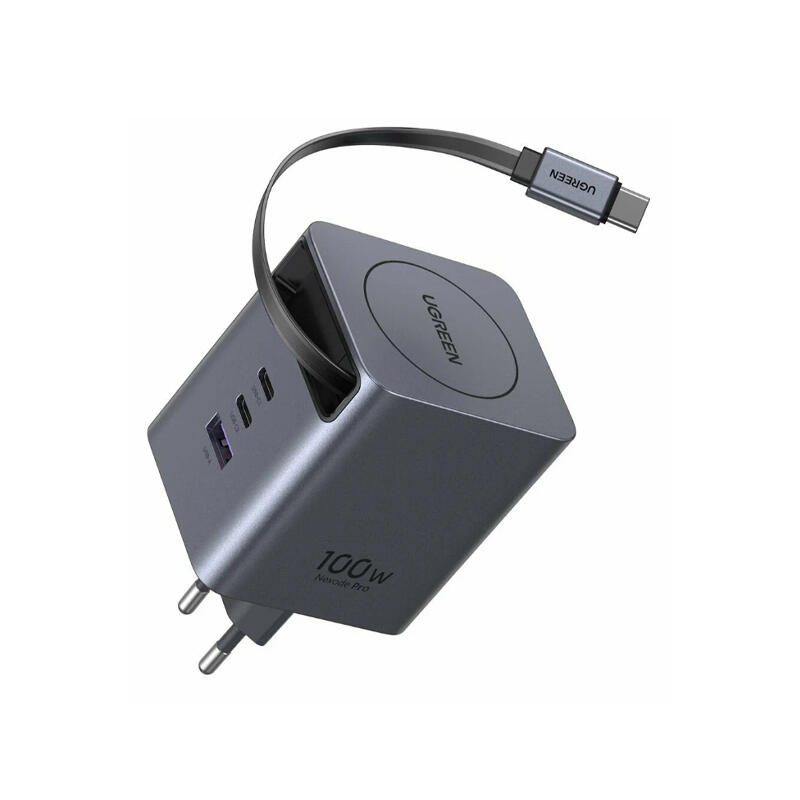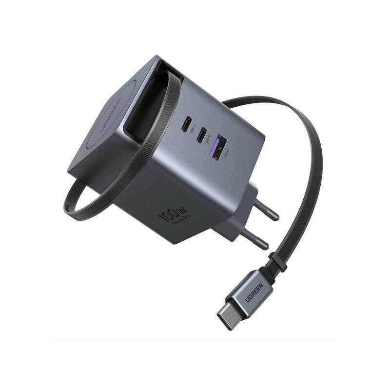 Ugreen 100W GaN Fast Charger with Retractable Cable 65828 Grey