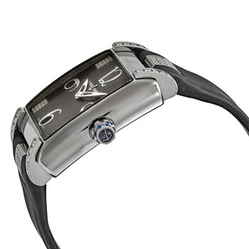 18kt white gold case with a black satin strap. Fixed bezel. Mother of pearl dial with silver-tone hands and Arabic numeral hour markers. Dial Type: Analog. Automatic movement. Scratch resistant sapphire crystal. Transparent case back. Square case shape. Case size: 34 mm x 35.4 mm. Water resistant at 50 meters / 165 feet. Functions: hour, minute. Luxury watch style. Watch label: Swiss Made. Ulysse Nardin Caprice Automatic Ladies Watch 130-91C/609.