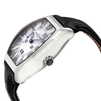 18kt white gold case with a black alligator leather strap. Fixed bezel. Silver dial. Dial Type: Analog. One- small seconds subdials. Ulysse Nardin Calibre UN-33 automatic movement. Scratch resistant sapphire crystal. Solid case back. Tonneau case shape. Case size: 38 x 43 mm. Water resistant at 50 meters / 165 feet. Functions: hour, minute, second, perpetual calendar. Luxury watch style. Watch label: Swiss Made. Item Variations: 330 48, 330.48, 33048. Ulysse Nardin Ludovico 18kt White Gold Automatic Perpetual Calendar Silver Dial Men's Watch 330-48.