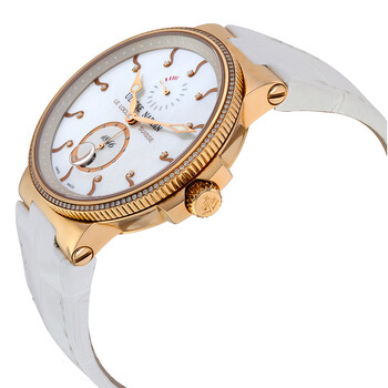 Marine Chronometer Automatic Mother of Pearl Diamond DIal 18kt Rose Gold White Leather Watch 26666B991