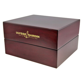 Stainless steel and titanium case with a black alligator leather strap. Fixed coin edge silver-tone bezel. White dial with luminous hands and Arabic numeral hour markers. Minute markers around the outer rim. Dial Type: Analog. Luminescent hands and markers. Date display at the 6 o'clock position. Two sub-dials displaying: small second and power reserve indicator. Ulysse Nardin Calibre UN-118 Automatic movement, based upon Ulysse Nardin UN-66, containing 50 Jewels, bitting at 28800 vph, and has a power reserve of approximately 60 hours. Scratch resistant sapphire crystal. Screw down crown. Transparent case back. Round case shape, case size: 43 mm, case thickness: 13.85 mm. Band width: 23 mm. Fold over with push button release clasp. Water resistant at 100 meters / 330 feet. Functions: date, hour, minute, second, power reserve indicator, chronometer. Marine Chronometer Series. Dress watch style. Watch label: Swiss Made. Ulysse Nardin Marine Chronometer White Dial Men's Watch 1183-126-61.
