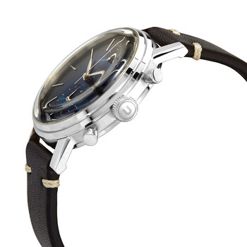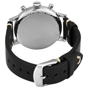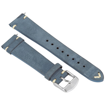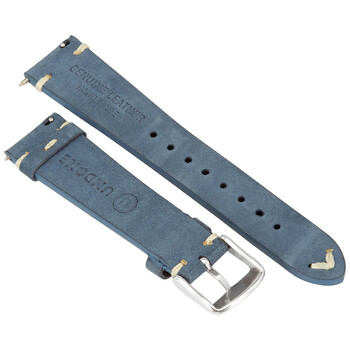 Stainless steel case with a black leather strap. Fixed stainless steel bezel. Blue dial with silver-tone hands and index hour markers. Dial Type: Analog. Chronograph - two sub-dials displaying: 60 seconds and 60 minute. Quartz movement. Scratch resistant mineral crystal. Pull / push crown. Solid case back. Round case shape. Case size: 40 mm. Band width: 20 mm. Tang clasp. Water resistant at 30 meters / 100 feet. Functions: chronograph, hour, minute, second. Additional Info: additional blue leather strap. Casual watch style. Undone Chronograph Quartz Blue Dial Watch MST-MCRY-SLV-ST.