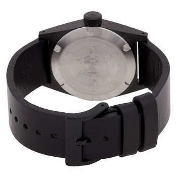 Black DLC stainless steel case with a black leather strap. Fixed black DLC stainless steel bezel. Matte black dial with black hands. Dial Type: Analog. Luminescent hands. Sellita Caliber SW200-1 Automatic movement, containing 26 Jewels, bitting at 28800 vph, and has a power reserve of approximately 38 hours. Scratch resistant sapphire crystal. Screw down crown. Solid case back. Round case shape, case size: 38.5 mm. Buckle clasp. Water resistant at 300 meters / 1000 feet. Functions: hour, minute, second. Additional Info: limited edition of 400 pieces. Modello Due Series. Dive watch style. Unimatic Limited Edition Modello Due Automatic Watch U2S-MN.