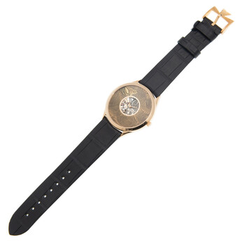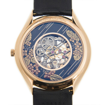18kt rose gold case with a black alligator leather strap. Fixed 18kt rose gold bezel. Gold tone dial with gold-tone leaf-style shape hands. Dial Type: Analog. Vacheron Constantin Calibre 1003 Hand Wind movement, containing 18 Jewels, composed of 117 parts, bitting at 18000 vph, and has a power reserve of approximately 31 hours. Scratch resistant sapphire crystal. Transparent case back. Round case shape, case size: 40 mm, case thickness: 8.2 mm. Tang clasp. Water resistant at 30 meters / 100 feet. Functions: hour, minute. Additional Info: limited edition: 20 pieces. Metiers D'art Series. Luxury watch style. Watch label: Swiss Made. Vacheron Constantin Metiers DArt Hand Wind Unisex Watch 33222/000R-9546.