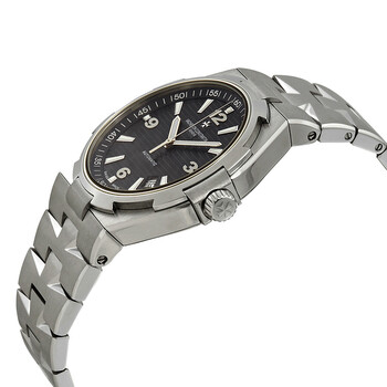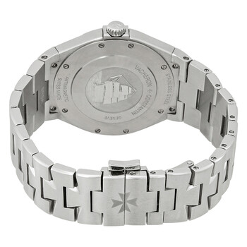 Silver-tone stainless steel case with a silver-tone stainless steel bracelet. Fixed silver-tone stainless steel bezel. Black textured dial with luminous silver-tone hands and index hour markers. Dial Type: Analog. Luminescent hands and markers. Date display between 4 and 5 o'clock position. Vacheron Constantin Calibre 1126 Automatic movement, containing 36 Jewels, bitting at 28800 vph, and has a power reserve of approximately 40 hours. Scratch resistant sapphire crystal. Screw down crown. Transparent case back. Round case shape, case size: 42.5 mm, case thickness: 9.7 mm. Band width: 22 mm. Fold over with push button release clasp. Water resistant at 150 meters / 500 feet. Functions: date, hour, minute, second. Overseas Series. Dress watch style. Watch label: Swiss Made. Item Variations: 47040B01A 9094, 47040B01A.9094, 47040B01A9094. Vacheron Constantin Overseas Automatic Men's Watch 47040B01A-9094.