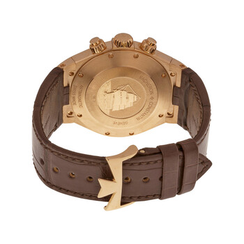 18kt rose gold case with a brown alligator leather strap. Fixed 18kt rose gold bezel. Brown dial with luminous rose gold hands and index hour markers. Minute markers around the outer rim. Dial Type: Analog. Luminescent hands and markers. Date display at the 12 o'clock position. Chronograph - three sub-dials displaying: 60 second, 30 minute and 12 hour. Vacheron Constantin Calibre 1137 Automatic movement, containing 37 Jewels, bitting at 21600 vph, and has a power reserve of approximately 40 hours. Scratch resistant sapphire crystal. Screw down crown. Solid case back. Round case shape, case size: 42.5 mm, case thickness: 12.45 mm. Band width: 20.3 mm, band length: 8 inches. Deployment clasp. Water resistant at 150 meters / 500 feet. Functions: chronograph, column wheel, big date, hour, minute, small second. Overseas Series. Luxury watch style. Watch label: Swiss Made. Item Variations: 49150000R-9338 , 49150/000R-9338 , X49R9861. Vacheron Constantin Overseas Brown Dial Chronograh Men's Watch 49150000R-9338.