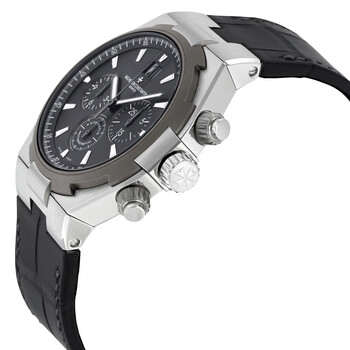 Stainless steel case with a black alligator leather strap. Fixed grey titanium bezel. Anthracite dial with luminous silver-tone hands and index hour markers. Minute markers around the outer rim. Dial Type: Analog. Luminescent hands and markers. Date display at the 12 o'clock position. Chronograph - three sub-dials displaying: 60 second, 30 minute and 12 hour. Vacheron Constantin Calibre 1137 Automatic movement, containing 37 Jewels, bitting at 21600 vph, and has a power reserve of approximately 40 hours. Scratch resistant sapphire crystal. Screw down crown. Solid case back. Round case shape, case size: 42 mm, case thickness: 12.45 mm. Fold over clasp. Water resistant at 150 meters / 500 feet. Functions: chronograph, column wheel, big date, hour, minute, small second. Overseas Series. Luxury watch style. Watch label: Swiss Made. Vacheron Constantin Overseas Chronograph Men's Watch 49150000W-9501.