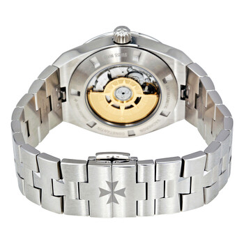 Stainless steel case with a stainless steel bracelet. Fixed stainless steel bezel set with 84 diamonds. Light pink dial with luminous silver-tone leaf-style hands and index hour markers. Minute markers around the outer rim. Dial Type: Analog. Luminescent hands and markers. Small seconds sub-dial at the 9 o'clock position. Vacheron Constantin calibre 5300 automatic movement, containing 31 Jewels, composed of 128 parts, bitting at 28800 vph, and has a power reserve of approximately 44 hours. Scratch resistant sapphire crystal. Screw down crown. Transparent case back. Round case shape. Case size: 37 mm. Case thickness: 10.8 mm. Fold over clasp with a push button release. Water resistant at 150 meters / 500 feet. Functions: hour, minute, second. Additional Info: 84 diamonds (1.0 carats). Overseas Small Series. Luxury watch style. Watch label: Swiss Made. Vacheron Constantin Overseas Small Automatic Ladies Watch 2305V/100A-B078.