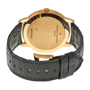 18kt 5n pink gold case with a black alligator leather strap. Fixed 18kt 5n pink gold bezel. Grey dial with rose gold-tone hands and index hour markers. Minute markers around the outer rim. Dial Type: Analog. Vacheron Constantin Calibre 1400 Hand Wind movement, containing 20 Jewels, composed of 98 parts, bitting at 28800 vph, and has a power reserve of approximately 40 hours. Scratch resistant sapphire crystal. Pull / push crown. Solid case back. Round case shape, case size: 40 mm, case thickness: 6.79 mm. Tang clasp. Water resistant at 30 meters / 100 feet. Functions: hour, minute,. Patrimony Series. Luxury watch style. Watch label: Swiss Made. Item Variations: 81180000R-9162 , 81180/000R-9162 , X81R8614. Vacheron Constantin Patrimony Grey Dial 18k Pink Gold Manual Men's Watch 81180000R-9162.