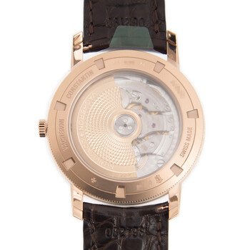 18kt rose gold case with a brown leather strap. Fixed 18kt rose gold bezel. Beige dial with rose gold-tone dauphine-style shape hands and index hour markers. Minute markers around the outer rim. Dial Type: Analog. Date display at the 3 o'clock position. One subdial displaying: small second. Vacheron Constantin Calibre 2455 Automatic movement, containing 27 Jewels, composed of 194 parts, bitting at 28800 vph, and has a power reserve of approximately 40 hours. Scratch resistant sapphire crystal. Transparent see through case back. Round case shape, case size: 38 mm. Pin buckle clasp. Water resistant at 30 meters / 100 feet. Functions: date, hour, minute, second. Traditionnelle Series. Luxury watch style. Watch label: Swiss Made. Vacheron Constantin Traditionnelle Beige Dial Men's Hand Wound Watch 87172/000R-B167.