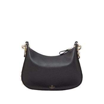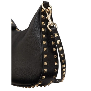 Valentino Garavani Ladies Shoulder Bag. Rockstud series. SKU: 4W2B0M37TAG0NO. Color: Black. Size: W: 10" x H: 7.6" x D: 2.1". Valentino Garavani Black Small Rockstud Leather Shoulder Bag. Crafted from luxurious black calf leather with a textured lambskin grain, this exquisite piece features elegant gold-tone Rockstud detailing. It comes with a versatile design, offering an adjustable and detachable shoulder strap as well as a single detachable top handle. The main compartment is easily accessible through a top zip fastening, revealing a well-organized interior with an internal slip pocket. The interior is lined with smooth leather for a refined finish. 100% Calf Leather. Made in Italy.