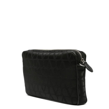 Valentino Men's Clutch. SKU: 5Y2P0U72CSH0NO. Color: Nero. Size: W:25cm x H:17cm x D:3cm. Valentino Toile Iconographe-Print Clutch. This clutch features a Toile Iconographe print, a top zip fastening, a detachable wrist strap, a main compartment, a front zip-fastening compartment, an internal slip pocket, internal card slots, a debossed internal logo, and full lining. 100% Cotton. Made In Italy.
