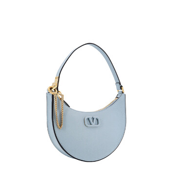 Valentino Ladies Shoulder Bag. SKU: 5W2P0W19RQRZJ4. Barcode: 8052962892690. Color: Blu Porcellana. Valentino VLogo Signature-Plaque Shoulder Bag. Crafted from calf leather with a pebbled texture, this bag features a curved-edge body, a leather and chain-link shoulder strap, and signature Rockstud detailing. It is adorned with a VLogo Signature plaque on the front and includes a main compartment, an internal logo patch, and an internal patch pocket. Finished with gold-tone hardware and a top zip fastening. Calf Leather 100% Made in Italy.