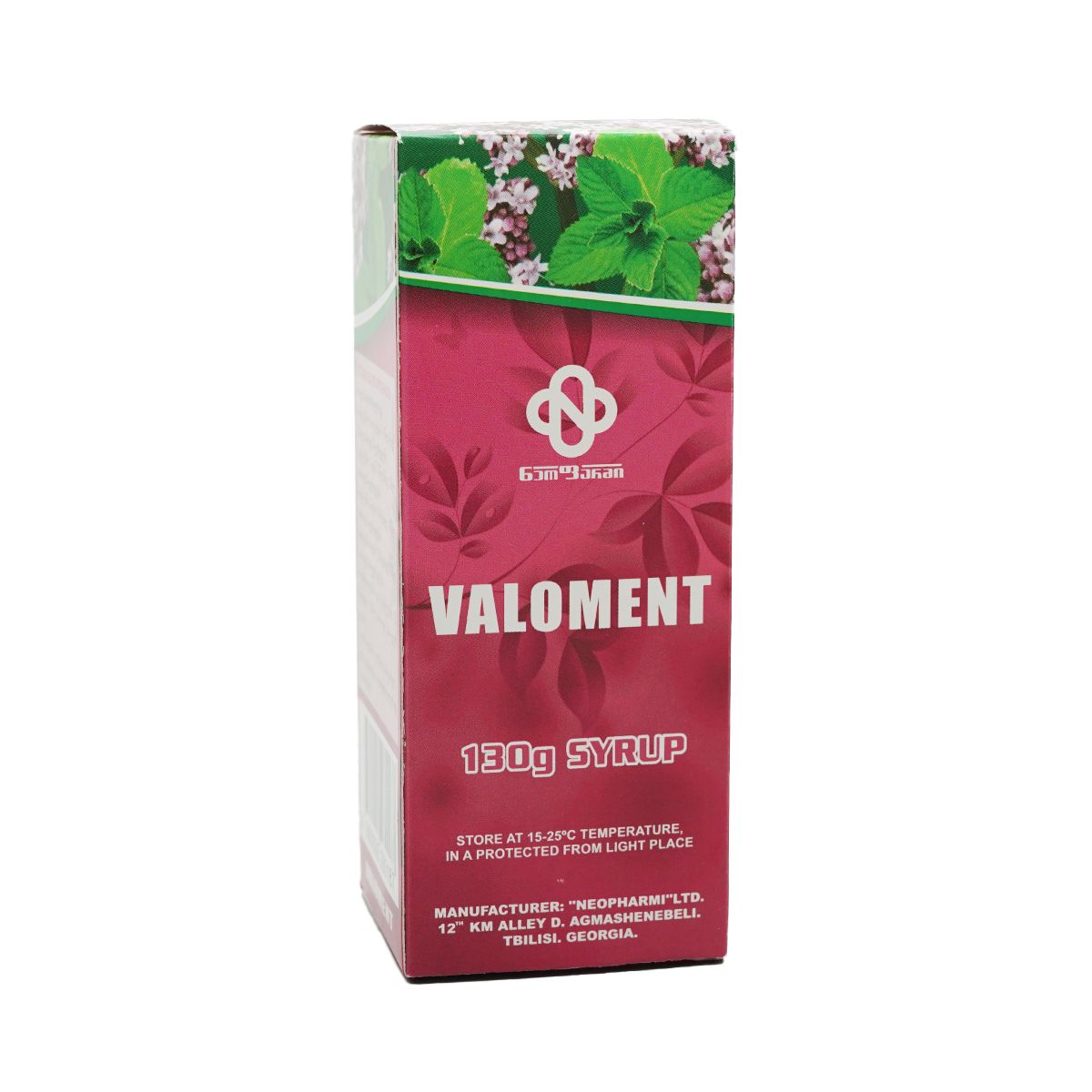 ,,ვალომენთი’’ შეიცავს ბიოლოგიურად აქტიურ ნივთიერებათა კომპლექსს: ეთერზეთებს (მენთოლი, ბორნეოლი, ბორნეოლიზოვალერიანატი, იზოვალერიანის მჟავა), ფლავონოიდებს, ტრიტერპენულ საპონინებს, ვალეპოტრიატებს.