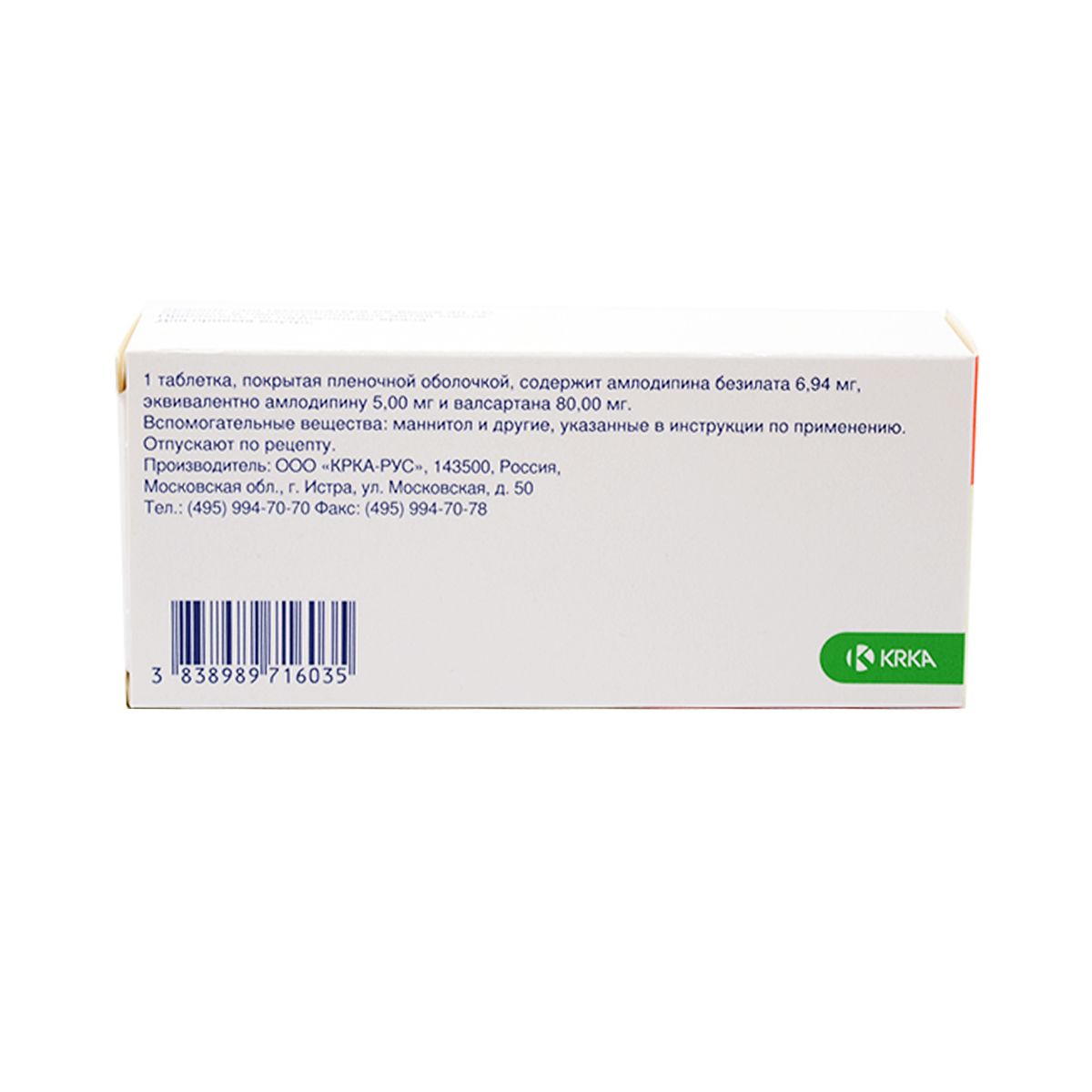 კომბინირებული ჰიპოტენზიური პრეპარატი, რომელიც შეიცავს ორ აქტიურ ნივთიერებას ადიტიური არტერიული წნევის კონტროლის მექანიზმით. ამლოდიპინი, დიჰიდროპირიდინის წარმოებული მიეკუთვნება “ნელი” კალციუმის არხების ბლოკატორების ჯგუფს, ვალსარტანი – ანგიოტენზინ II რეცეპტორების ანტაგონისტების ჯგუფს. აღნიშნული კომპონენტების კომბინაციას გააჩნია ადიტიური ჰიპოტენზიური მოქმედება, რაც იწვევს არტერიული წნევის უფრო გამოხატულ დაქვეითებას, განსხვავებით არტერიული წნევისა მათი ცალ-ცალკე გამოყენების დროს.