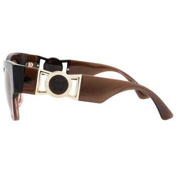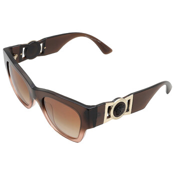 Versace Sunglasses. Series number: VE4415U. Color code: 533213. Shape: Cat Eye. Lens Width: 52 mm. Lens Bridge: 21 mm. Arm Length: 145 mm. 100% UV protection. Non-Polarized. Frame Material: Plastic. Frame Color: Transparent Brown Gradient Beige. Lenses Type: Brown Gradient. Rim Style: Full-Rim. UPC/EAN code: 8056597667371. Versace Brown Gradient Cat Eye Ladies Sunglasses VE4415U 533213 52.