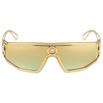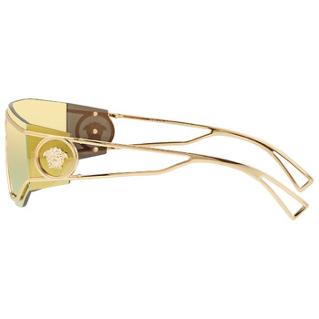 Versace Sunglasses. Series number: VE2226. Color code: 10027P. Shape: Shield. Lens Width: 145 mm. Lens Bridge: 0 mm. Arm Length: 115 mm. 100% UV protection. Non-Polarized. Frame Material: Metal. Frame Color: Gold. Lenses Type: Brown Mirror Gold. Rim Style: Rimless. UPC/EAN code: 8056597236805. Versace Brown Mirror Gold Shield Men's Sunglasses VE2226 10027P 145.