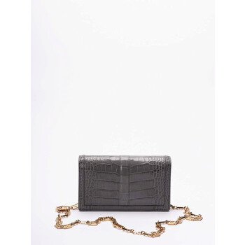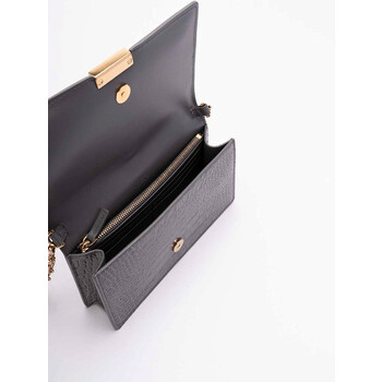 Versace Ladies Shoulder Bag. SKU: 1007220 1A08724 1E51V. Color: Charcoal Melange/Versace. Versace Croc-Effect Greca Goddess Mini Bag. Versace Greca Goddess Croc-Effect Crossbody Bag A sleek and structured design, the Greca Goddess Crossbody Bag is crafted from croc-embossed calf leather and finished with Versace’s signature Greca hardware in gold-tone metal. The compact silhouette features a flap closure, smooth leather interior with a slip pocket, and an adjustable chain and leather strap for versatile styling. Dimensions: W 7.68 x H 4.72 x D 1.97 inches. Made in Italy.