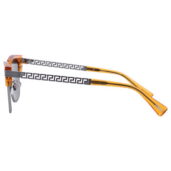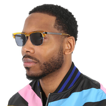 Versace Sunglasses. Series number: VE4447. Color code: 541280. Shape: Square. Lens Width: 55 mm. Lens Bridge: 17 mm. Arm Length: 145 mm. 100% UV protection. Non-Polarized. Frame Material: Plastic. Frame Color: Transparent Yellow. Lenses Type: Dark Blue. Rim Style: Full-Rim. UPC/EAN code: 8056597838474. Versace Dark Blue Square Men's Sunglasses VE4447 541280 55.