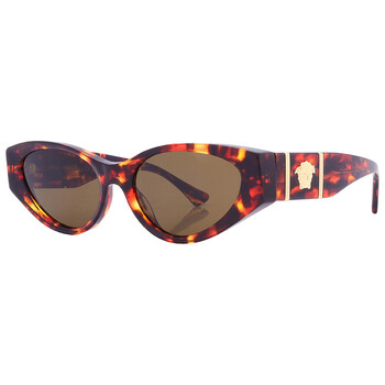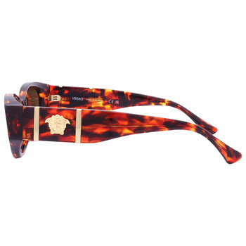 Versace Sunglasses. Series number: VE4454. Color code: 543773. Shape: Cat Eye. Lens Width: 55 mm. Lens Bridge: 18 mm. Arm Length: 140 mm. 100% UV protection. Non-Polarized. Frame Material: Acetate. Frame Color: Havana. Lenses Type: Dark Brown. Rim Style: Full-Rim. UPC/EAN code: 8056597921930. Versace Dark Brown Cat Eye Ladies Sunglasses VE4454 543773 55.
