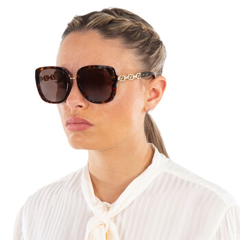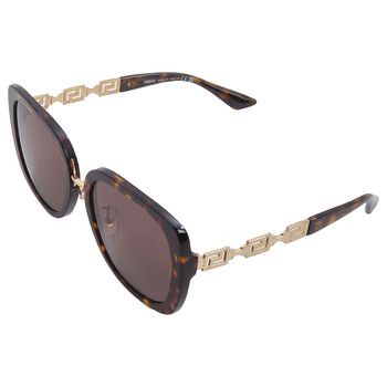 Versace Sunglasses. Series number: VE4407D. Color code: 108/73. Shape: Square. Lens Width: 56 mm. Lens Bridge: 19 mm. Arm Length: 140 mm. 100% UV protection. Non-Polarized. Frame Material: Acetate;Metal. Frame Color: Havana/Gold. Lenses Type: Dark Brown. Rim Style: Full-Rim. UPC/EAN code: 8056597408240. Versace Dark Brown Square Ladies Sunglasses VE4407D 108/73 56.